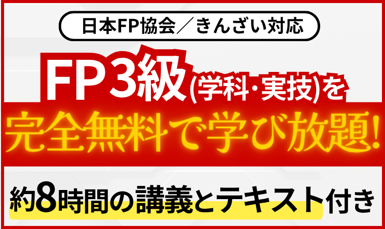 | FP3級 総合講義 | 0円 | ・映像講義 約8時間 ※視聴期限180日(無料でお試しOK) |