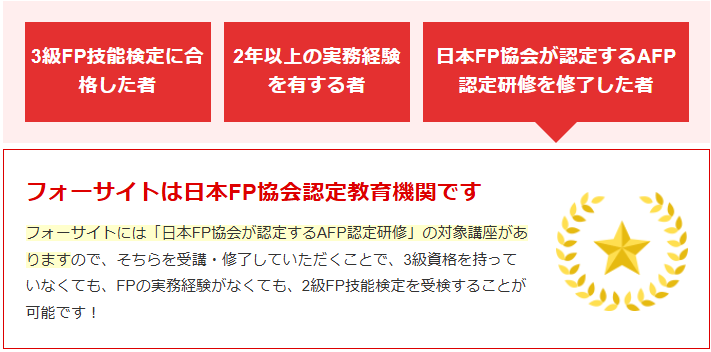 - AFP認定研修付きならFP2級を最短で狙える
