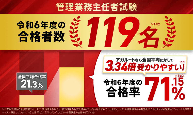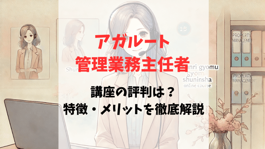 この記事では「アガルートの管理業務主任者講座」について、特徴・料金・メリット・注意点・口コミ(公式合格者の声)をまとめて解説します。