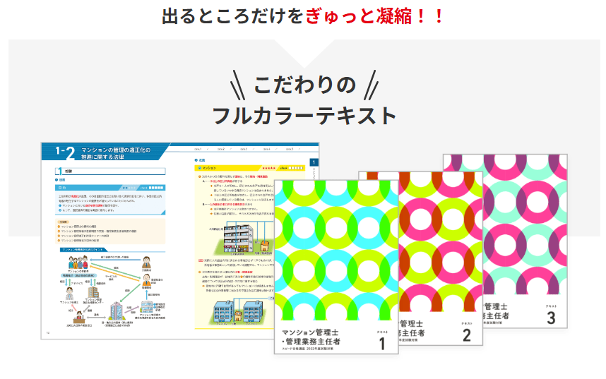 不動産系資格でも知名度の高い通信講座で、宅建・マンション管理士・管理業務主任者などでも受講者が多いことで知られています。
